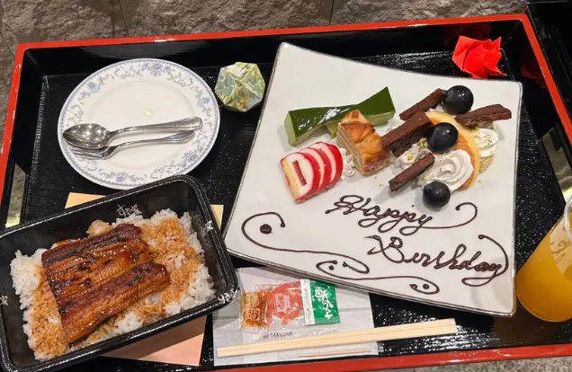 ご家族様からお聞きしたエピソードにあった、故人様がよく買いに行かれていたという、お気に入りのお弁当と一緒に、厨房特製のバースデープレートをお供えさせて頂きました